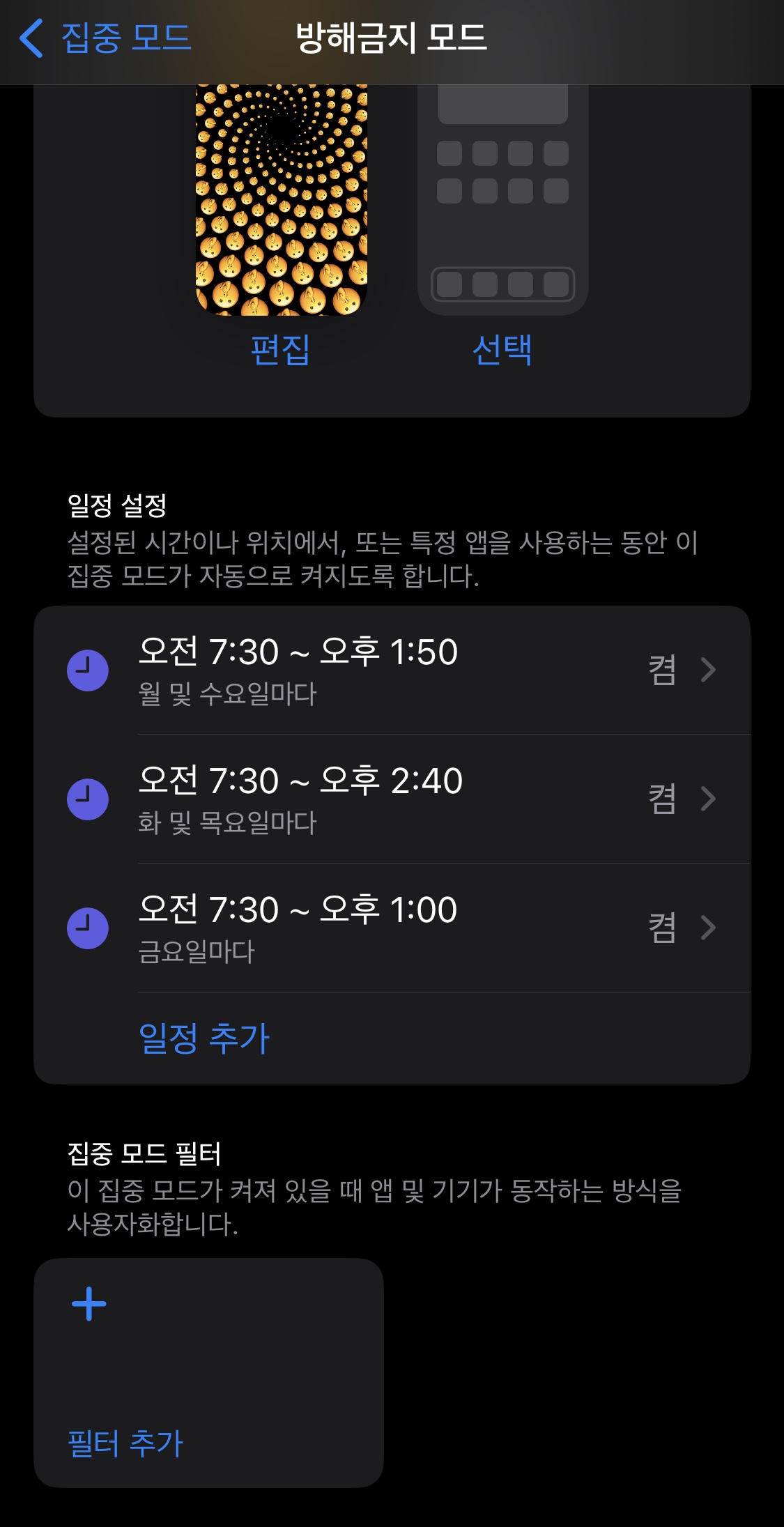 그래서 방해금지 모드를 잘 활용합니다.